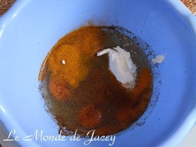 Eier, Creme fraiche, kleine Prise Salz, sowie je 1/2 Teelöffel Pfeffer, Paprikapulver und Kurkuma sehr gut verquirlen. Die Masse darf nicht zu flüssig sein.