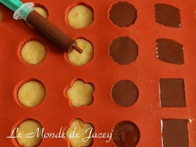 Eine Form für kleine Pralinen mit je 2/3 Marzipanmasse füllen.