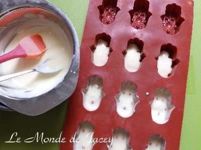 Wenn die Schokolade fest ist, die Formen mit der Kuchenmasse füllen.