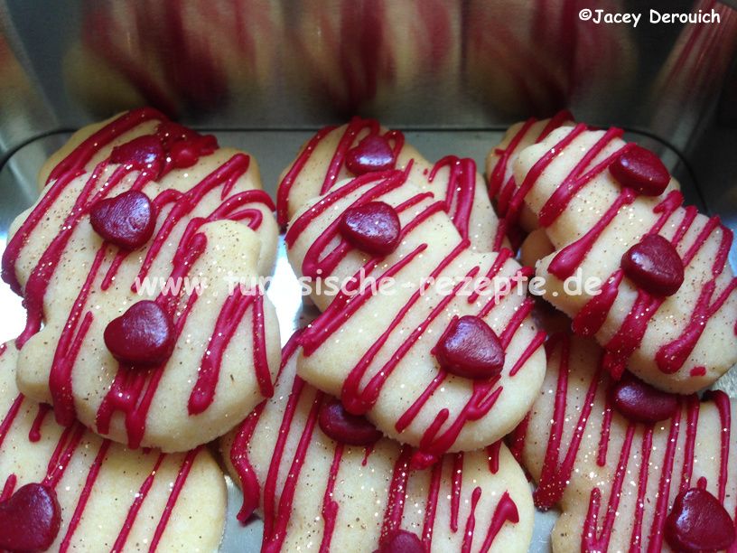 Oder man kann sie auch mit Puderzuckerglasur und Glitzer dekorieren.