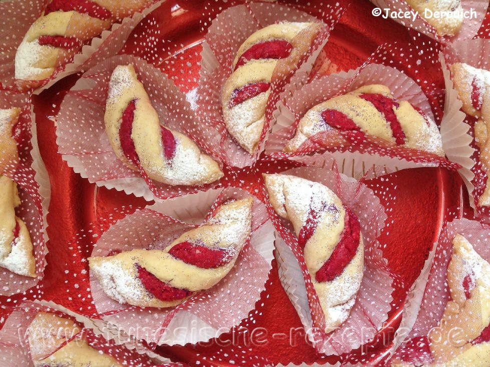 Auskühlen lassen und dann die Enden mit etwas Puderzucker bestäuben.