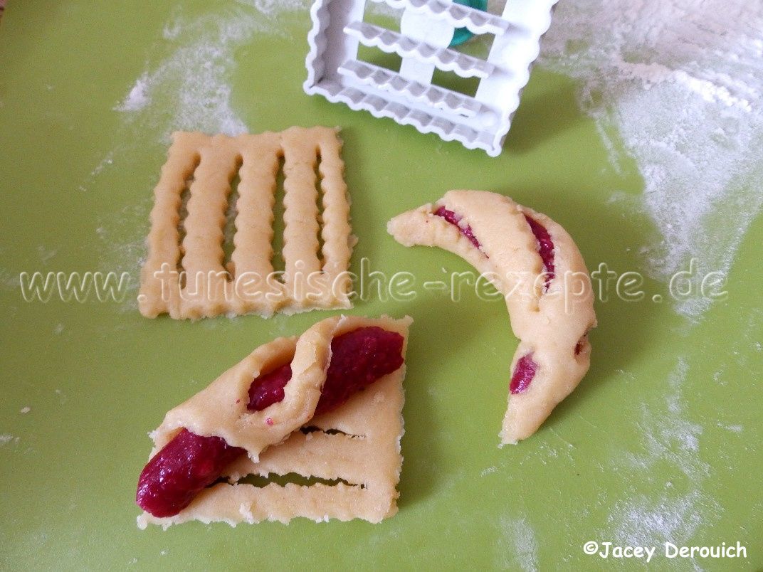 Kaab dial Ghzal (Gazellenhörner) kann man auf die unterschiedlichsten Arten zubereiten. Dieses hier ist eher eine moderne Variante. Ein weiteres Rezept findet ihr hier