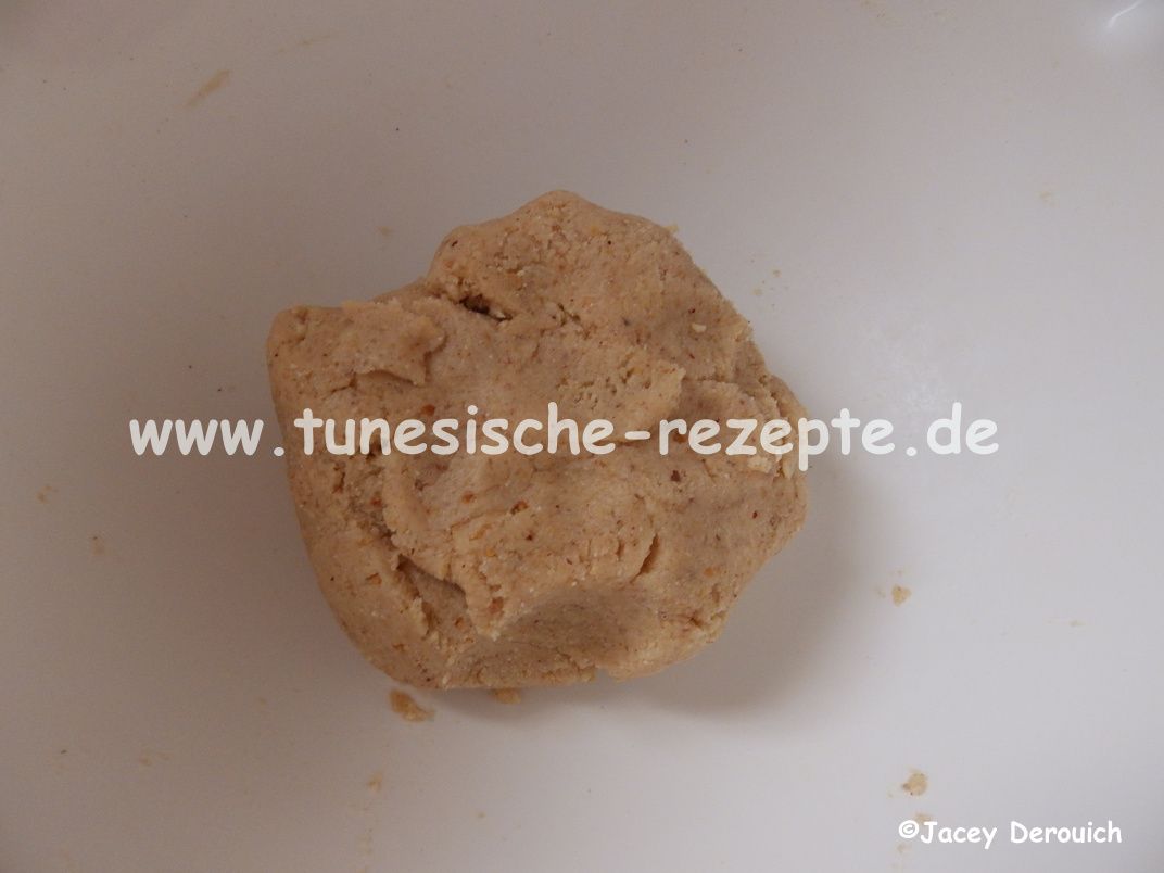 Die komplette Kugel dann in eine Maamoulform drücken und vorsichtig wieder heraus klopfen.